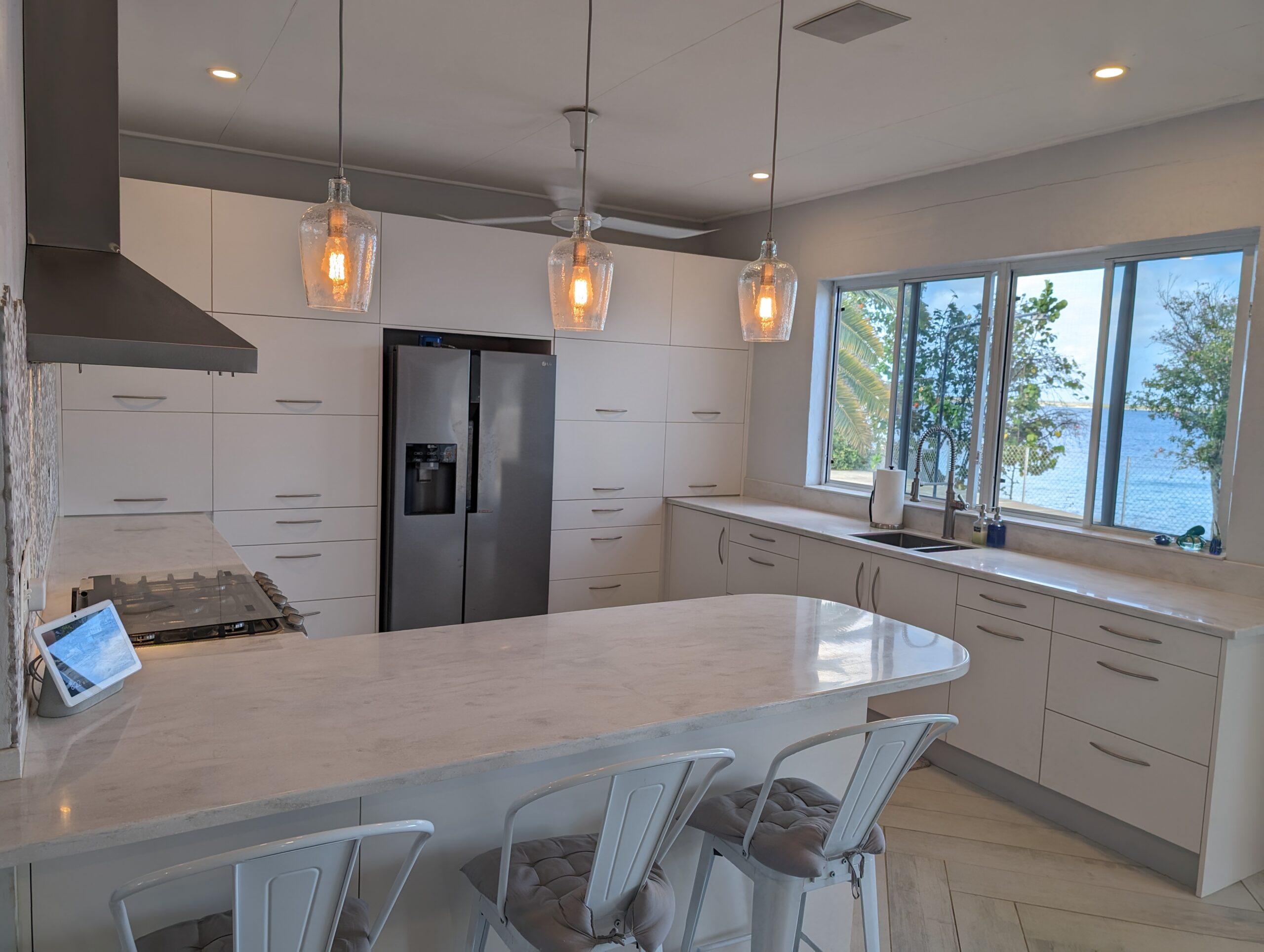 Nestled in the tranquil area of Hato, this recently renovated villa boasts 3 bedrooms and 3 bathrooms, including two master suites with fully renovated attached bathrooms. The living area features a dining room and seating area with direct access to the patio and the Caribbean Sea. The expansive folding glass door allows for seamless indoor-outdoor living, connecting the inside of the villa to the outside.